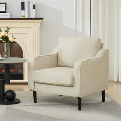 Garvee Mid-Century Accent Chair Mit Leinenstoff Und Holzbeinen Für Wohnzimmer & Büro, 30"W x 32"H, Beige