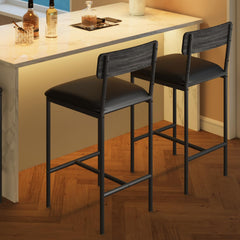Garvee Barhocker Set 2, Küchen Barstühle Mit Fußstütze, Gepolstert, Ergonomische Rückenlehne, MDF & Stahl, Rustikales Schwarz, Stabil, Für Tresen & Insel