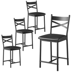 Garvee Barhocker Set 2 Metallrahmen PU-Sitz X-Design Rückenlehne Fußstütze 26" Schwarz Kücheninsel Esszimmer