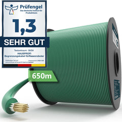 - Präzise Begrenzungen und saubere Schnitte: Mit einer Länge von 450 m und einer Dicke von 2,7 mm sorgt unser Begrenzungskabel für millimetergenaue Kanten. Das stabile Magnetfeld gewährleistet eine zuverlässige Signalübertragung, ideal für geschwungene Beete und komplexe Ecken, auch auf Gelände mit Hindernissen wie Teichen oder Felsen.