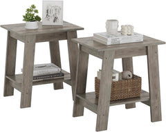 Garvee Beistelltisch Set 2er Mit 2 Ablagen Für Wohnzimmer Und Schlafzimmer, Kompakt, Holz & Metall, Stabil, Schwarz