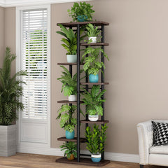 Garvee 8 Tier Blumenregal Pflanzenregal Metall Holz Für Garten Balkon Terrasse 136x36x23.5cm Mehrstöckig Mehrschichtiges Design Schwarz