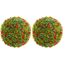 Garvee Buchsbaumkugel 4er-Set Groß Ø32 cm – Künstlich mit Rosa Blumen für Garten & Hochzeit