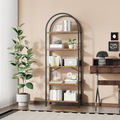 Garvee 5-Stöckiges Bücherregal Mit Metallrahmen, Großes Offenes Regal, Bogenförmige Ablage, Schwarz Für Wohnzimmer & Büro