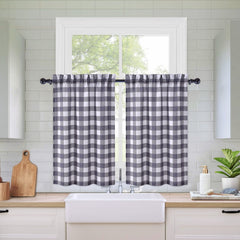 GARVEE Buffalo Grau Kariert Kurze Vorhänge Wasserdicht Polyester Für Küche Bad Wohnzimmer 28"x24"