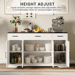 Garvee Moderner Buffet-Sideboard Küchenschrank Mit 3 Schubladen, 55" Farmhouse-Stil, Weiß, Wohnzimmer & Esszimmer