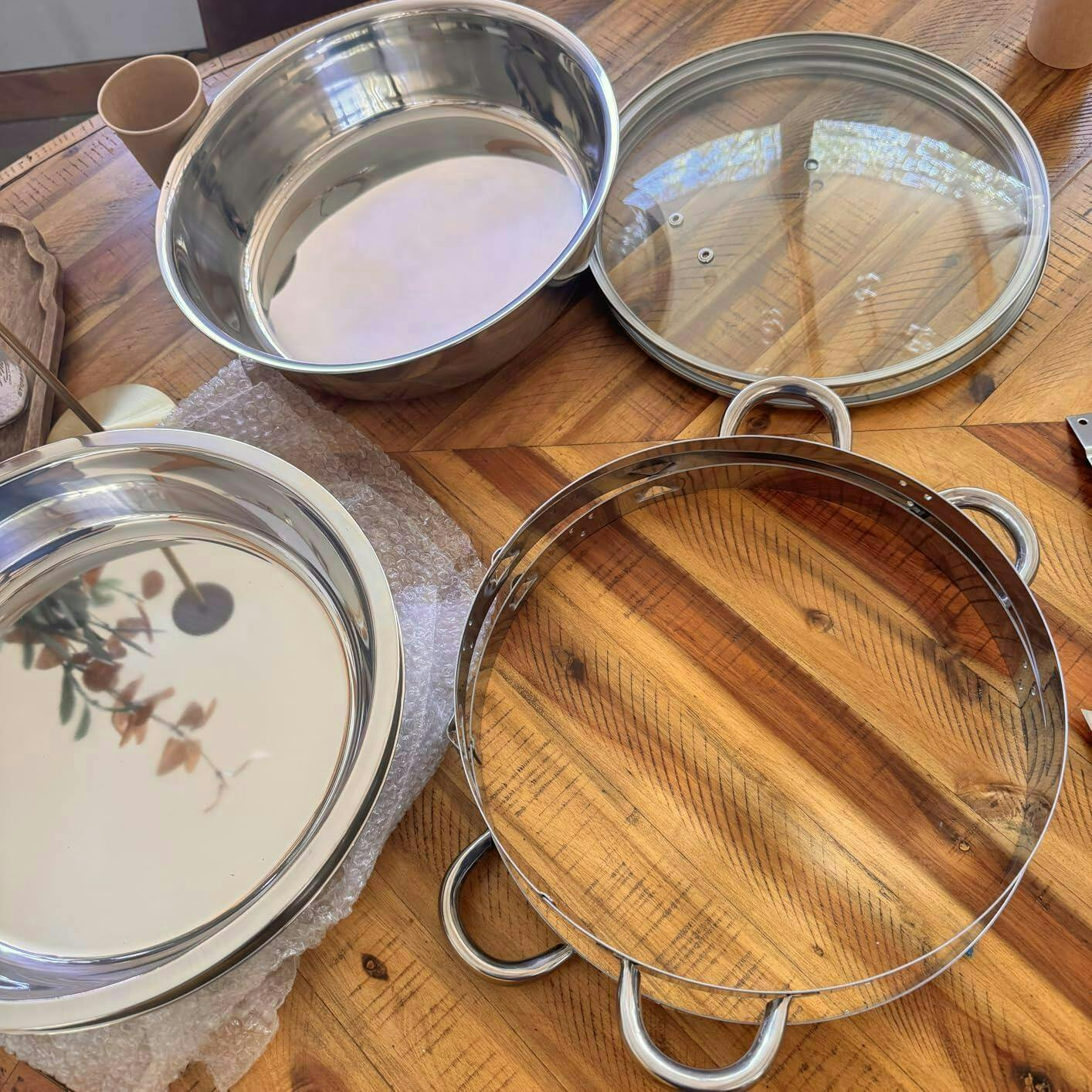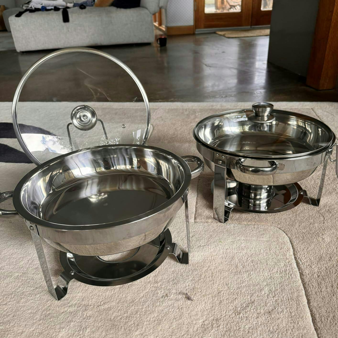 Garvee Chafing Dish 4er Set 5QT – Edelstahl, Silberrahmen, Rund, 42 × 41 × 28 cm, Für Events & Buffet
