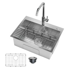 Garvee Silbergrau Edelstahl-Einbau-Spüle, 1 Becken (83,8x55,9x22,9 cm) – Mit Schneidebrett & Zubehör für die Küchenarbeitsplatte