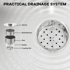 - Hochwertige Materialien: Hergestellt aus robustem, NSF-zertifiziertem 304-Edelstahl, besticht dieses freistehende Nutzbecken durch eine solide Struktur, die sowohl stabil als auch rostfrei ist. Die glatte, polierte Oberfläche ist für eine einfache Pflege und Reinigung konzipiert und sorgt für eine langanhaltende Haltbarkeit.