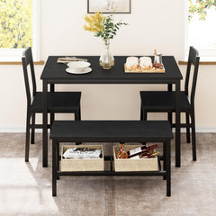 Garvee Esstisch Set Für 4 Mit Bank Und Stühlen, Platzsparend, Mit Stauraum, MDF & Stahl, Robust, Schwarz, Kleine Wohnungen