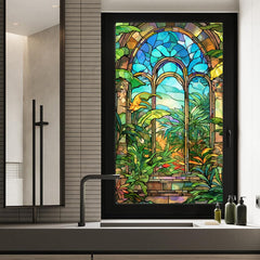 Garvee Fensterfolie Mit Pflanzenmuster Sichtschutz UV-Schutz Abnehmbar Statisch Haftend 45x Für Bad Und Schlafzimmer