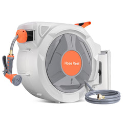Garvee Retractable Garden Hose Reel 1/2" x 130 Ft, 9-Function Sprayer, Auto Slow Return, 3-Ply PVC & Brass, 180° Swivel, Wall Mounted, Gartenbewässerung