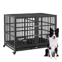 Garvee 48 Zoll Hundebox Mit Rollen, Trenner, Stabile Schlösser, Metall, Herausnehmbares Tablett Für Kleine Bis Große Hunde, Indoor & Outdoor, Vielseitig, Schwarz