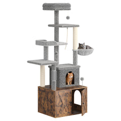 Garvee Litter Box Enclosure Mit Katzenbaum 2-in-1 Katzenmöbel Geruchsneutral Holz Grau Indoor Katzenmöbel
