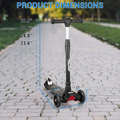 - 【4-STUFIGE HÖHENVERSTELLUNG】Die rostfreie Aluminiumlegierung T-Stange mit sicherem Hebe- und Drehverschluss kann von 25,5" bis 33" über dem Boden verstellt werden. Dieser 3-Rad-Roller ist für wachsende Kinder im Alter von 3 bis 12 Jahren geeignet. Der neu gestaltete Drehverschluss bietet mehr Sicherheit und Haltbarkeit im Vergleich zu alten Kragenklemmen.