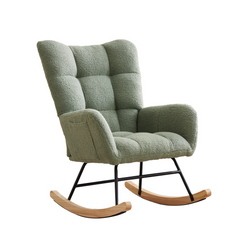- STABILER RAHMEN - Die Struktur unseres Schlafzimmerstuhls verfügt über einen Eisenrahmen, der eine hohe Tragfähigkeit von 250 lbs und unbestreitbare hohe Stabilität gewährleistet. Das Design mit Holzbeinen verleiht Ihrem Zuhause eine elegante Dekoration. Zusätzlich ist an der Unterseite der Holzbeine geräuschdämpfender Baumwollstoff angebracht, sodass Sie eine ruhige Schaukelbewegung genießen können, ohne den Boden zu zerkratzen.