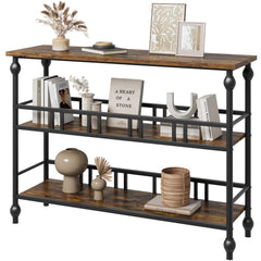 Garvee 43" Konsolentisch 3-Stufig Schmal Rustikal Graues Holz Mit Regalen Für Wohnzimmer Flur Schlafzimmer