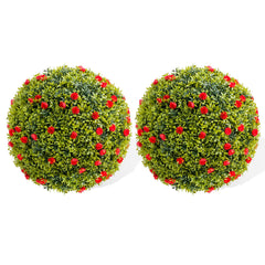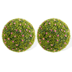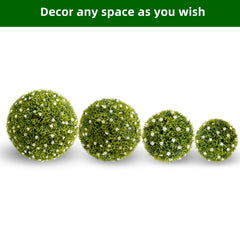 Garvee 12,6" Künstliche Pflanzen Kugel Set Boxwood Mit Weißen Blumen Für Balkon & Garten Wetterfest Pflegeleicht PE Material Grün Weiß