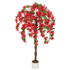 Garvee 5 FT Bougainvillea Künstlicher Baum Mit 168 Roten Blüten, Natürlicher Stamm, Stabiler Topf Für Wohnzimmer Und Büro, Rot, Polyester