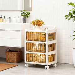 Garvee Ergonomischer Kunststoff-Organizer Mit 3 Transparenten Schubladen Für Büro & Zuhause, 36L, Beige, Kompakt 33x38x71 cm, 4 Rollen Mit Bremse