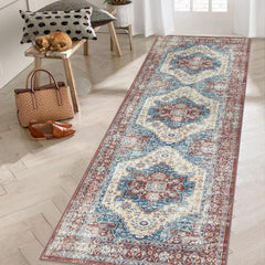 Garvee Vintage Läufer Teppich Blaue Grau 60x230cm Fleckenresistent Waschbar Für Flur Küche Schlafzimmer Wohnzimmer