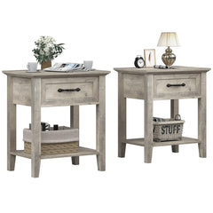 Garvee Graue Nachttische Set 2 Mit Schublade, 2 Ebenen Stauraum, Holz, Robust, Für Schlafzimmer & Wohnzimmer, 19.7x15.7x23.4 Zoll, Grau