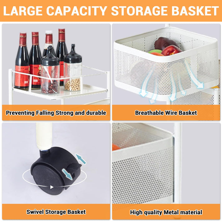 Garvee Rollwagen 3-lagig – Weißer Metall Küchenwagen 63×28×28 cm, Robust & Hohe Tragkraft