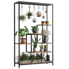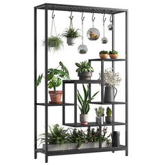 Garvee Indoor Pflanzenständer 5-Stufig Metallrahmen Mit Haken Für Balkon & Wohnzimmer 70,9 Zoll Schwarz