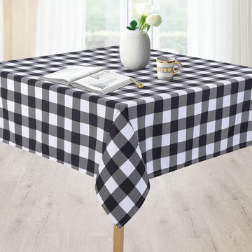 GARVEE Wasserabweisende Polyester-Tischdecke Quadratisch 132x132 cm Schwarz-Weiß Für Küche Und Picknick