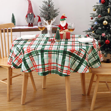 GARVEE Runde Tischdecke Weihnachten Wasserdicht Abwischbar Kariert Rot Grün 152 cm Esszimmer Festlich