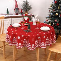 Garvee Runde Weihnachts-Tischdecke Rot Mit Schneeflocken- Und Pin-Motiv, Wasserabweisend, Polyester, Festlich Für Weihnachts- Und Neujahrsfeiern