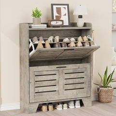 Garvee Schuhschrank Schmal mit 2 Klappfächern, P2-Holz, Lüftungsaktiv, Kratzfest, 35 cm Tiefe, Grau