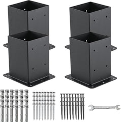 Garvee 4er-Set 2mm Stahl Pfostenhalter Für 4x4 Holzpfosten, Vierseitige Verstärkung, Pulverbeschichtet Schwarz, Komplettset Für Terrassen & Zäune
