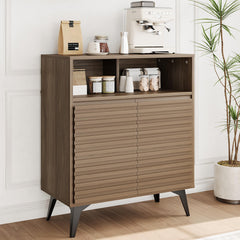 - Geräumiger Stauraum mit offenen & geschlossenen Fächern – Mit offenen Regalen und geschlossenen Schränken entworfen, hält dieser geriffelte Buffet-Schrank Ihr Geschirr, Glaswaren oder tägliche Utensilien organisiert und außer Sicht, was ihn perfekt für Esszimmer, Wohnzimmer oder Eingangsbereich macht