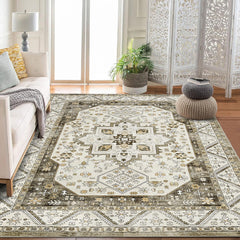 Garvee Vintage Boho Teppich 120x170cm Rutschfest Waschbar Weiches Kurzflor TPR Gummi Rücken Wohnzimmer Schlafzimmer Büro