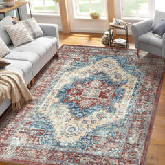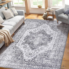 Garvee Vintage Teppich Orientalisches Design Rutschfest Fleckenresistent Waschbar Niedriger Flor Grau 160x230 cm Wohnzimmer Schlafzimmer
