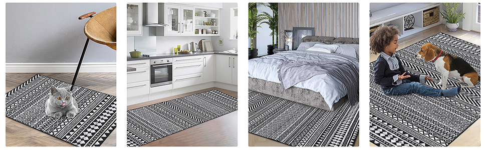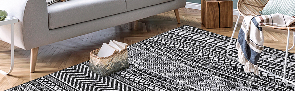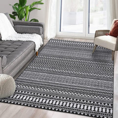 Garvee Wasserdichter Teppich Moroccan Boho, Waschbar, Ölresistent, Rutschfest, 160x230cm, Schwarz, Wohnzimmer & Schlafzimmer