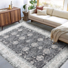 Garvee Vintage Teppich Groß 200x290 cm, Wasser- & Vlekbeständig, Antislip, Laagpolig, Oosters Design, Dunkelgrau, Maschinenwaschbar, Innen & Außen
