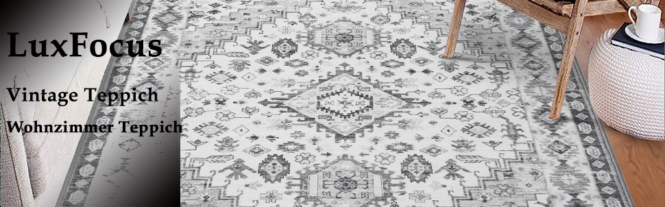 GARVEE Traditioneller Teppich Bohémien Stil Waschbar Antirutsch Weich Fleckenresistent Faltbar 80x150 cm Grau Wohnzimmer