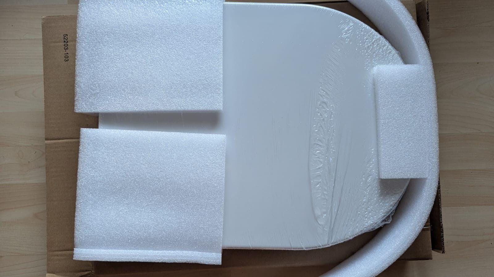 Die Klobrille kam gut verpackt an und war leicht zu montieren.Sie ist per Knopfdruck abnehmbar.Kein wackeln alles sitz komplett fest.Die Brille ist auch bequem und leicht zu reinigen.Wir haben ein Geberit Klo und ich wollte schon eine Teure bestellen da wir eine Originale hatten, zum Glück nicht gemacht, den diese steht der Originalen nichts nach.Wir finden sie sogar angenehmer zum Sitzen.Der Schließmechanismus funktioniert auch.