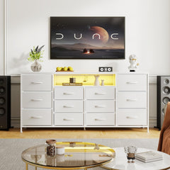 Garvee 63" TV-Kommode Für 65-75" TVs Mit 12 Schubladen, LED-Beleuchtung, Stoff, Ladegerät, Metallrahmen Für Wohnzimmer & Schlafzimmer