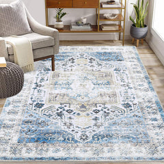 Garvee Groot Vintage Teppich Waschbarer Teppich 200x290 cm Für Wohnzimmer Schlafzimmer Esszimmer Blau