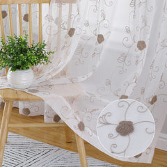 GARVEE Voile Gardinen Mit Blumenmuster Halbtransparent Leicht Polyester Braun 140x245cm Für Küche Und Badezimmer