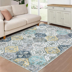 Garvee Waschbare Vintage-Teppiche 120x170cm Faltbare Niederflor-Innenmatte Wohnzimmer Blau Gelb