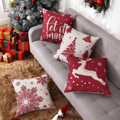 GARVEE Weihnachtskissenbezüge Set 4er 45x45cm Polyester Reißverschluss Weihnachtsmuster Sofa Deko Innen Weihnachten