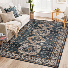 Garvee Vintage Wohnzimmerteppich Weich Waschbar Orientalisch Traditionell Navy 120 x 170 cm