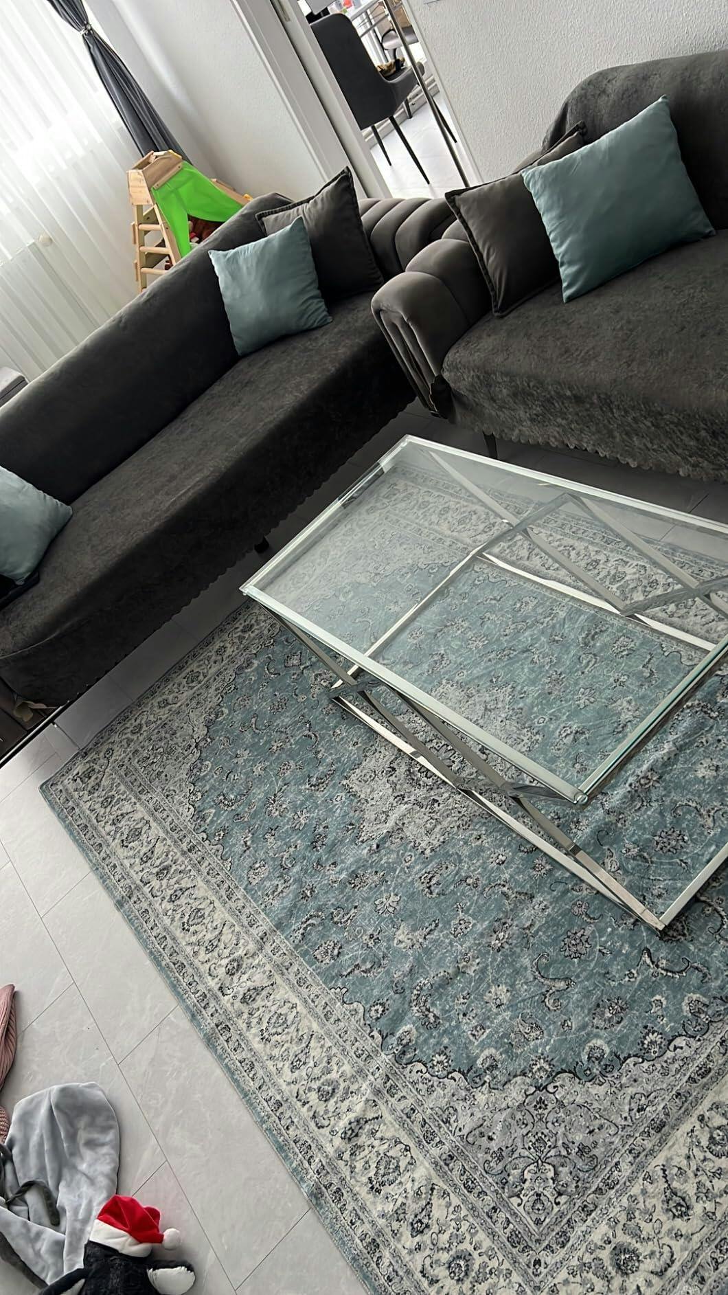 GARVEE Orientteppich Vintage 160x230cm | Rutschfest, wasser- & fleckenabweisend mit niedriger Florhöhe | Klassischer Wohnzimmerteppich in Hellblau