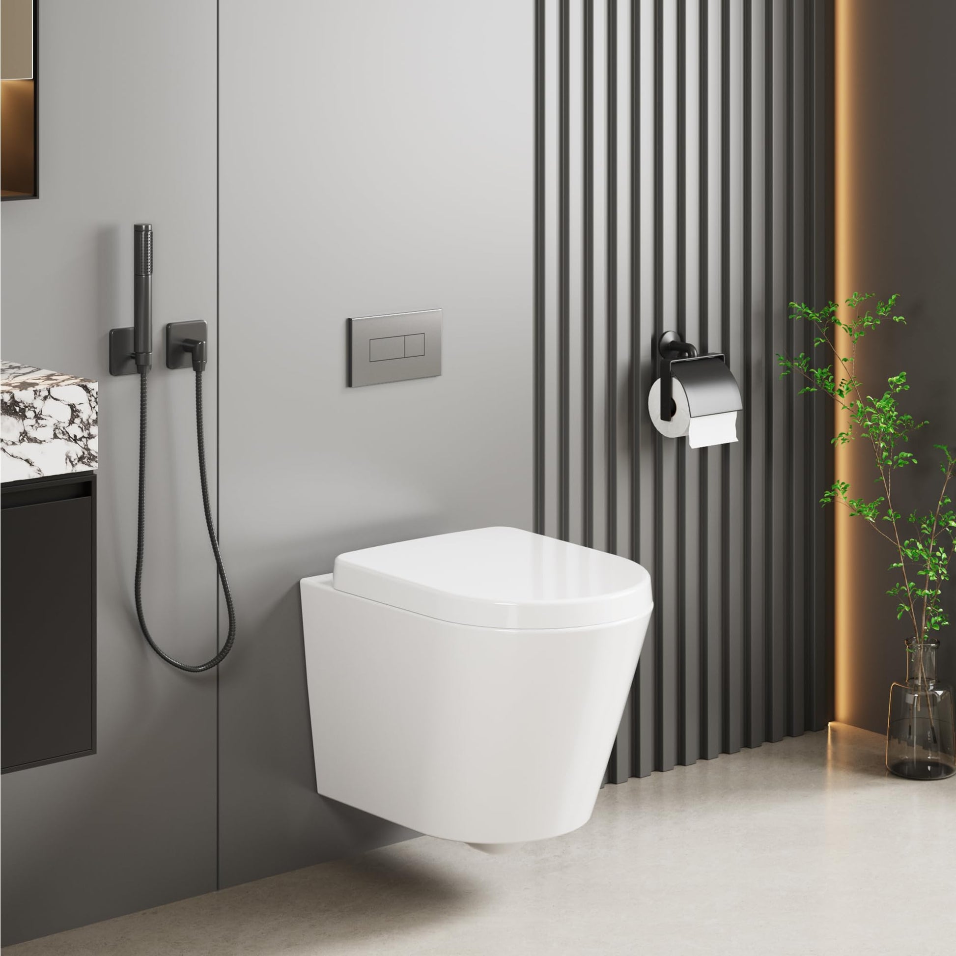 GARVEE Wandhängender WC-Sitz D-Form 51cm Weiß | Keramik, Soft-Close-Absenkautomatik | Für modernes Bad